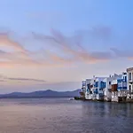 6-slaapkamer Little Venice Suites appartementen in Mykonos Town bieden verhuur van auto's en een terras met uitzicht op de Egeïsche Zee. De Mikonos luchthaven van Napels ligt op 5 km afstand en de bushalte otopark ligt op 950 meter van het appartement.